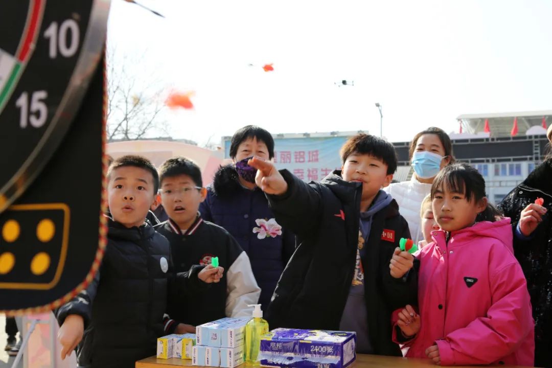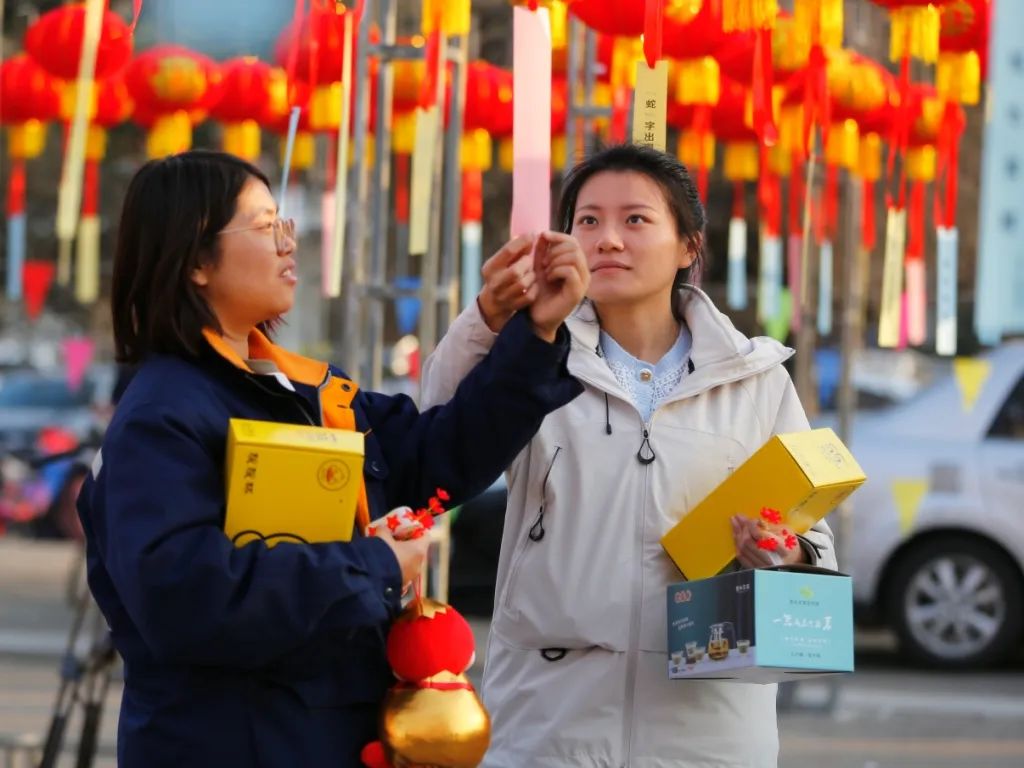 活動現(xiàn)場,人潮涌動、熱鬧非凡。紅彤彤的燈籠高高掛起,五顏六色的燈謎彩紙隨風(fēng)飄揚(yáng)……此次元宵節(jié)游園活動分為燈謎競猜、新春手作及游戲互動三類。