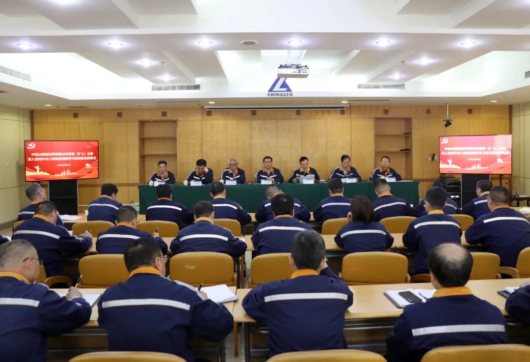 會(huì)議傳達(dá)學(xué)習(xí)了中央黨的建設(shè)工作領(lǐng)導(dǎo)小組會(huì)議精神、國(guó)務(wù)院國(guó)資委黨委擴(kuò)大會(huì)議暨黨建工作領(lǐng)導(dǎo)小組會(huì)議精神、中鋁集團(tuán)黨組和中鋁股份黨委(擴(kuò)大)會(huì)暨開展深入貫徹中央八項(xiàng)規(guī)定精神學(xué)習(xí)教育啟動(dòng)部署會(huì)精神以及《中共中央八項(xiàng)規(guī)定》和《中央八項(xiàng)規(guī)定實(shí)施細(xì)則》主要內(nèi)容。